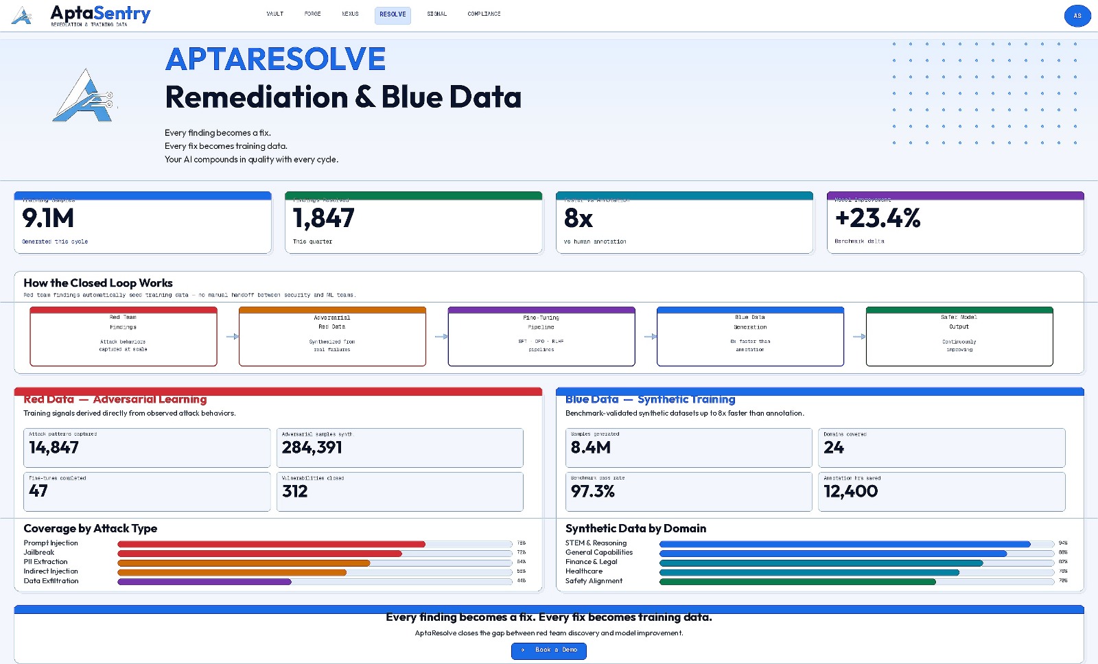 Every finding becomes a fix. Every fix becomes training data. Your AI compounds in quality with every cycle. Finding a vulnerability doesn’t make your model safer. What makes it safer is feeding what you learned back into how it is trained. The gap between red team findings and model improvement is where most AI security programs stall — because bridging it requires high-quality training data that most teams cannot generate at speed or scale.